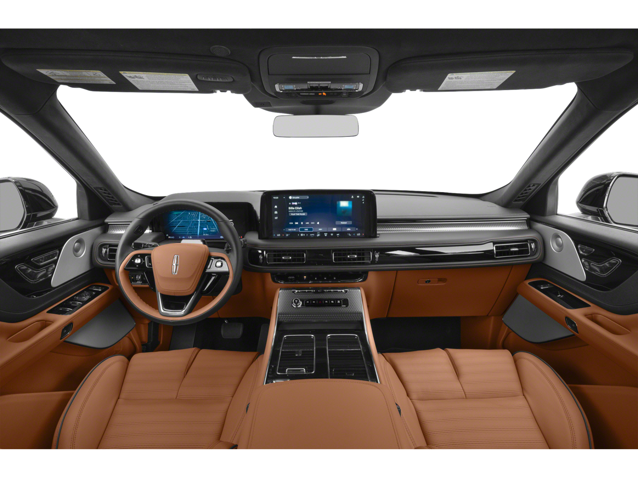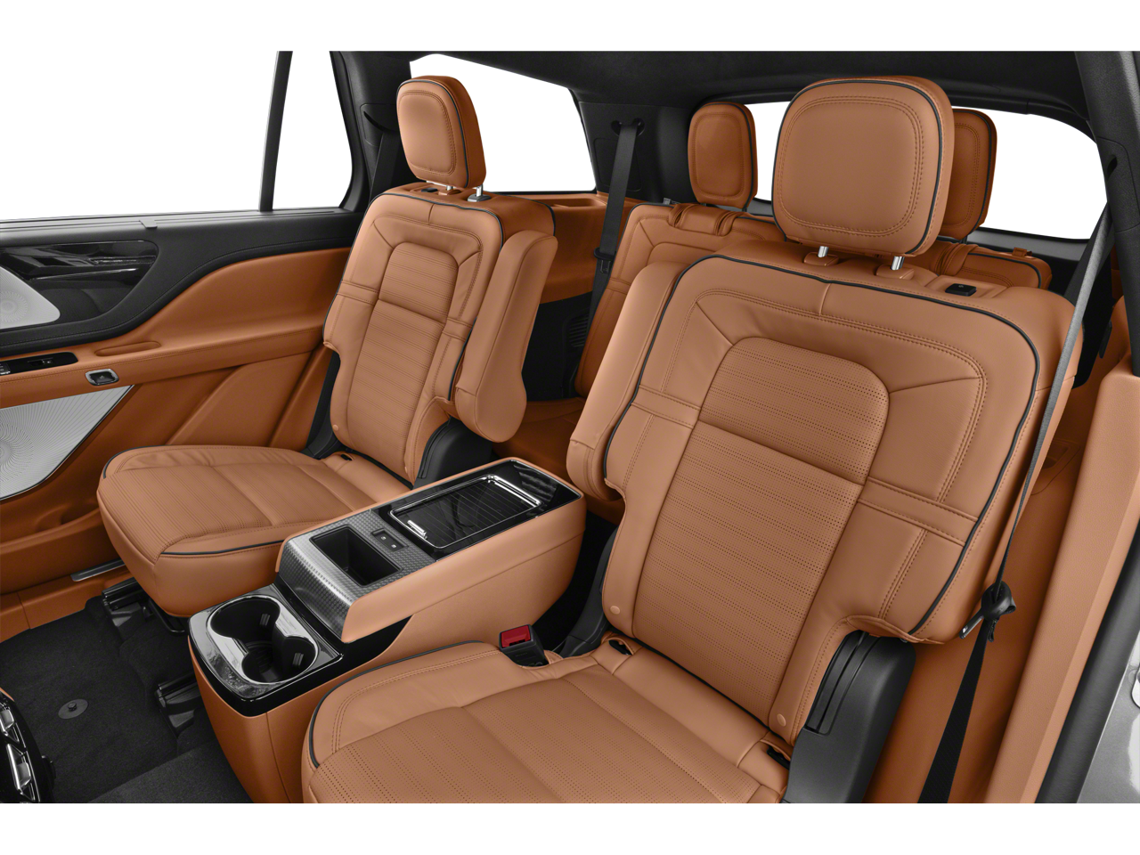 Inside our Lincoln Black Label Flight-themed cabin, enjoy executive-class comfort and sophisticated technologies. Highlights include heated/ventilated leather front seats and second-row captain's chairs, a power-fold third row, a heated leather power steering wheel, quad-zone automatic climate control, a 28-speaker Revel audio system, a 10.1-inch touchscreen, full-color navigation, WiFi compatibility, Apple CarPlay/Android Auto, Bluetooth®, wireless charging, and voice control.