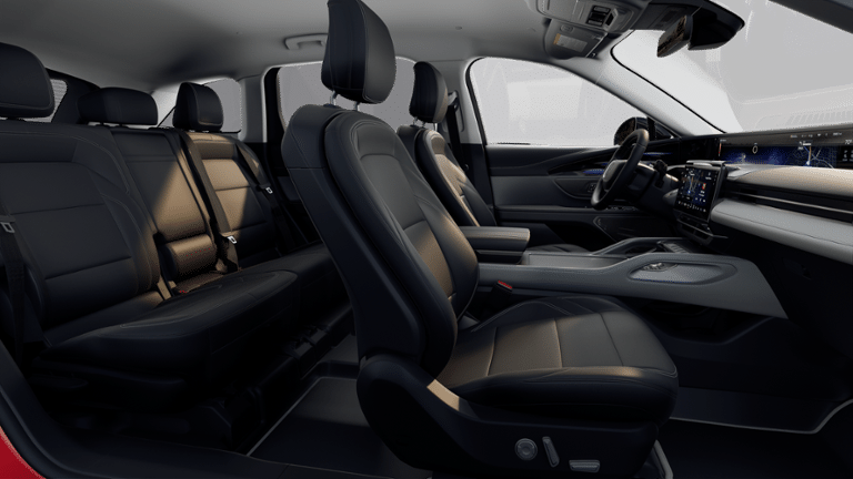 Our Premiere cabin features first-class amenities, including heated and ventilated soft-touch power front seats, an EasyFold second row, a heated leather power steering wheel, dual-zone automatic climate control, remote start, keyless access and ignition, and an impressive full-width 48-inch front display. An 11.1-inch touchscreen is also standard for digital convenience, featuring wireless Android Auto and Apple CarPlay, Alexa Built-in, Wi-Fi compatibility, Bluetooth®, wireless charging, and 10-speaker audio.