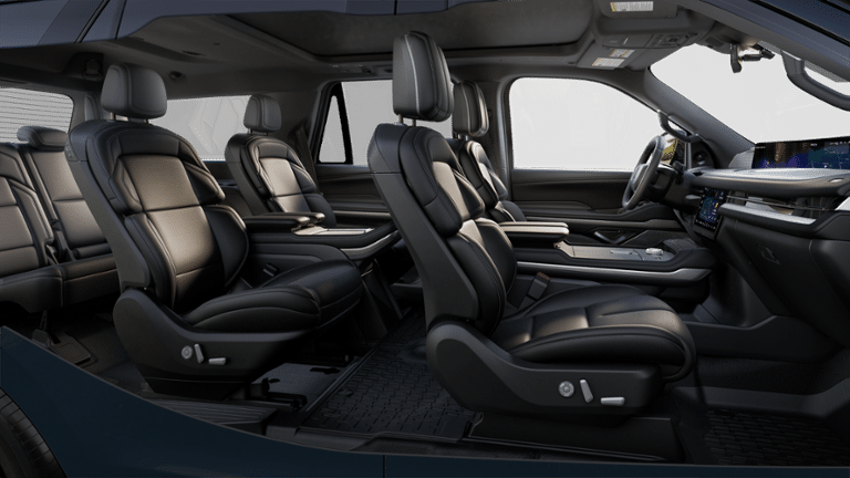 Crafted details in our Reserve cabin elevate your driving. It features heated/ventilated leather front seats and second-row captain's chairs, a power-folding third row, a heated leather power steering wheel, tri-zone automatic climate control, power-adjustable pedals, and real-wood accents. Digital benefits include a 48-inch panoramic dashboard driver display with Pano Mode, connected navigation, voice control, Android Auto/Apple CarPlay, WiFi compatibility, Alexa Built-In compatibility, Bluetooth®, wireless charging, and Revel audio.