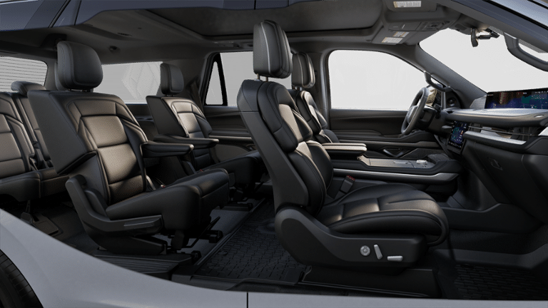 The opulent design inside our Reserve cabin elevates your driving. It features heated/ventilated leather front seats and second-row captain's chairs, a power-folding third row, a heated leather power steering wheel, tri-zone automatic climate control, power-adjustable pedals, and real-wood accents. Digital benefits include a 48-inch panoramic dashboard driver display with Pano Mode, connected navigation, voice control, Android Auto/Apple CarPlay, WiFi compatibility, Alexa Built-In compatibility, Bluetooth®, wireless charging, and 28-speaker Revel audio.