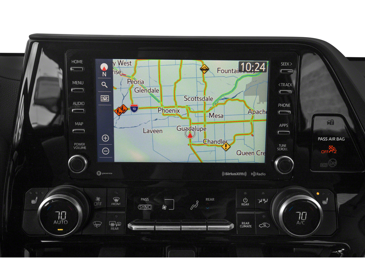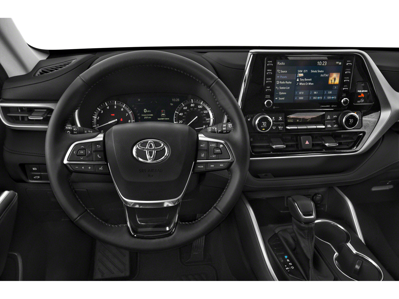 Inside, our spacious XLE cabin can fit up to seven people while offering upscale amenities such as heated SofTex power front seats, second-row captain's chairs, a versatile third row, tri-zone automatic climate control, a 7-inch driver information display, and an 8-inch touchscreen. That's the focal point of our infotainment system, which includes Android Auto/Apple CarPlay, Amazon Alexa capability, available WiFi, Bluetooth®, wireless charging, and a six-speaker sound system.
