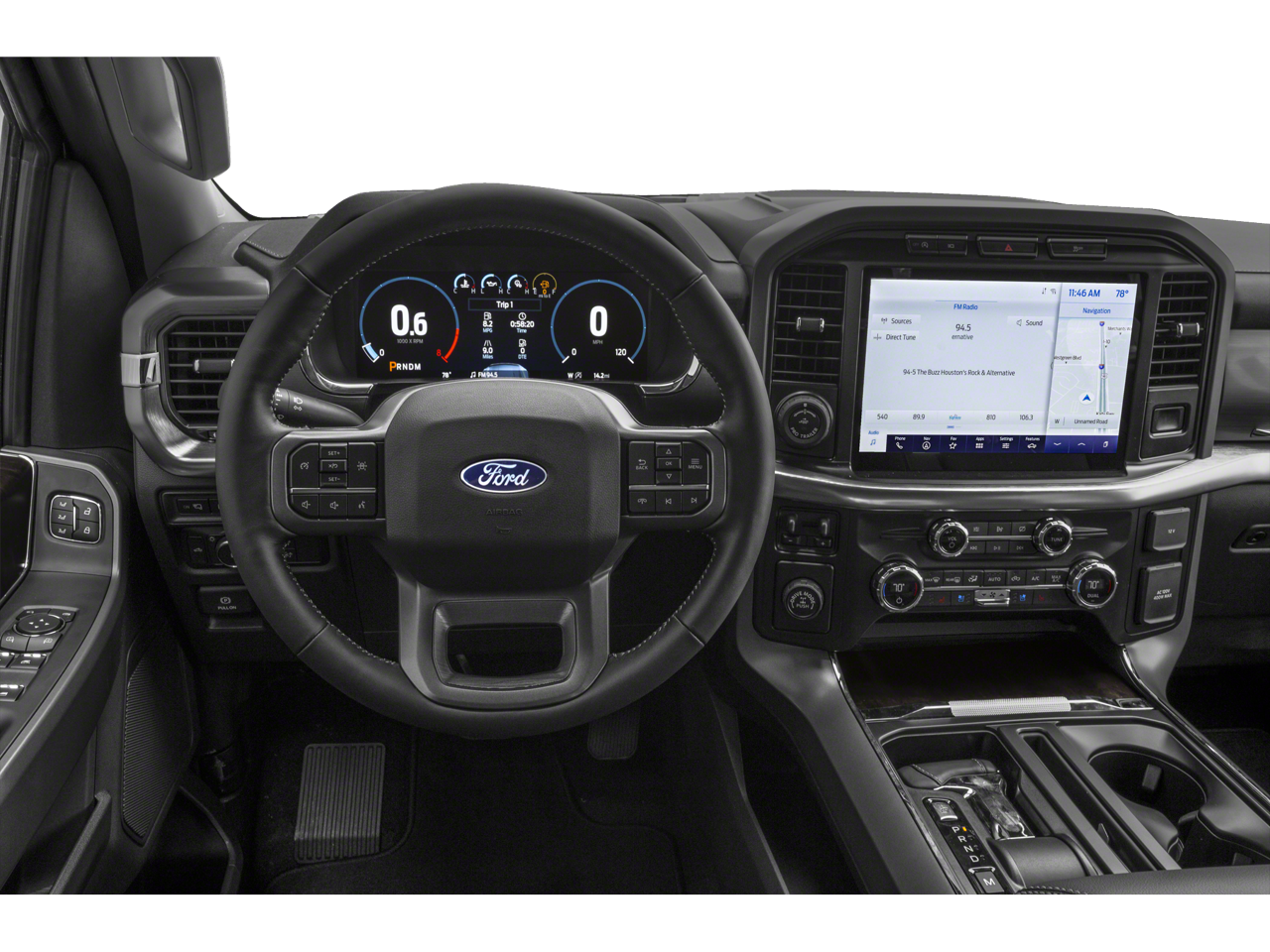 Our Lariat cabin has upgraded appointments, including heated/ventilated leather power front seats, a leather-wrapped steering wheel, dual-zone automatic climate control, power-adjustable pedals, and Intelligent Access with pushbutton ignition. Smart technology is at your fingertips, including a 12-inch digital productivity screen, a 12-inch central touchscreen, WiFi compatibility, voice control, Android Auto, Apple CarPlay, Bluetooth®, and six-speaker audio.