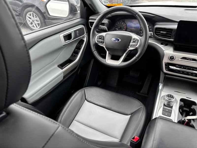 Impressively popular, our One Owner, Accident-Free, Low Mile 2023 Ford Explorer XLT with the 202A Pack and Sport Appearance Pack is well known for rewarding families with style and versatility in Star White Metallic! Motivated by a TurboCharged 2.3 Liter EcoBoost 4 Cylinder that generates 300hp connected to a 10 Speed Automatic transmission for premium pulling potential. This Rear Wheel Drive SUV also tackles tough challenges with a terrain management system, and it scores nearly 28mpg on the highway. Bold, good looks come into the picture with our rugged Explorer, which has LED lighting, a power liftgate, heated power mirrors, roof rails, 20-inch Carbon Gray painted alloy wheels, a sunroof, and black cladding with chrome accents.