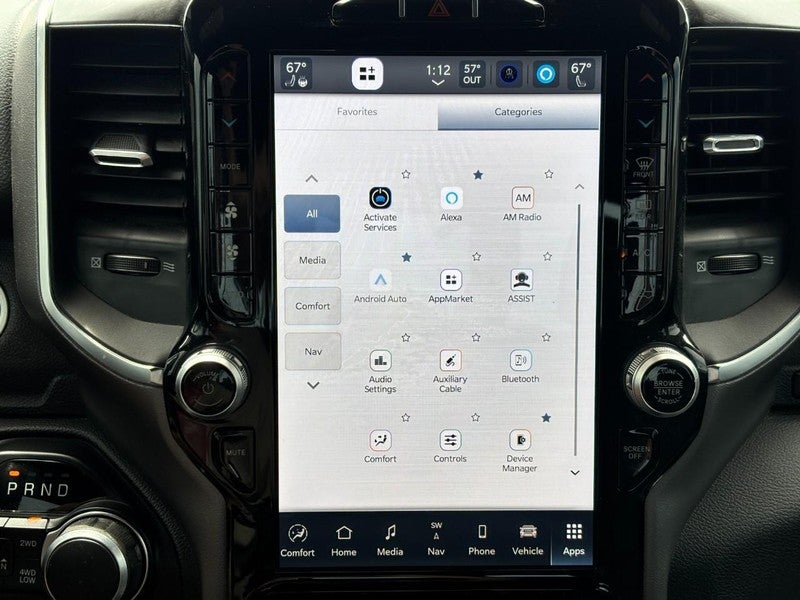 Many rewarding details are standard in our Big Horn cabin, starting with our Level B Pack that adds heated cloth front seats, a heated leather steering wheel, dual-zone automatic climate control, remote start, a 115V/400W outlet, power-adjustable pedals, a power rear window, and upgraded infotainment. This superior interior boasts a 12-inch touchscreen, 7-inch driver display, WiFi compatibility, Android Auto, Apple CarPlay, Bluetooth®, voice control, and a nine-speaker sound system.